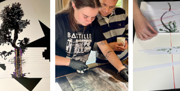 The artworks produced during the course of the workshop were displayed and celebrated in an exhibited at the prestigious gallery at the Edinburgh Printmakers alongside an exhibition of work by Dr Catherine Baker titled ‘Held’ in September, 2022.