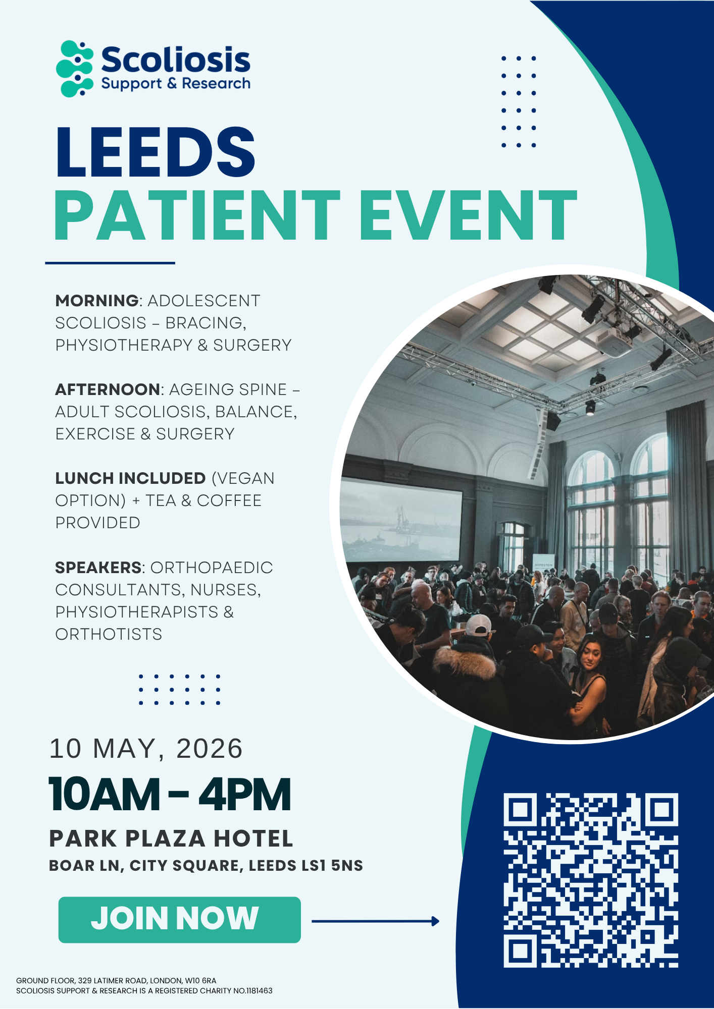 We’re excited to invite you to a full-day scoliosis patient event in Leeds. This event is designed for anyone affected by scoliosis – whether you’re newly diagnosed, supporting someone, or managing the condition yourself.